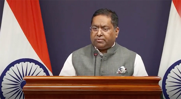 當(dāng)?shù)貢r(shí)間10月16日,印度外交部發(fā)言人蘭迪爾·賈伊斯瓦爾主持新聞發(fā)布會(huì)。 視頻截圖