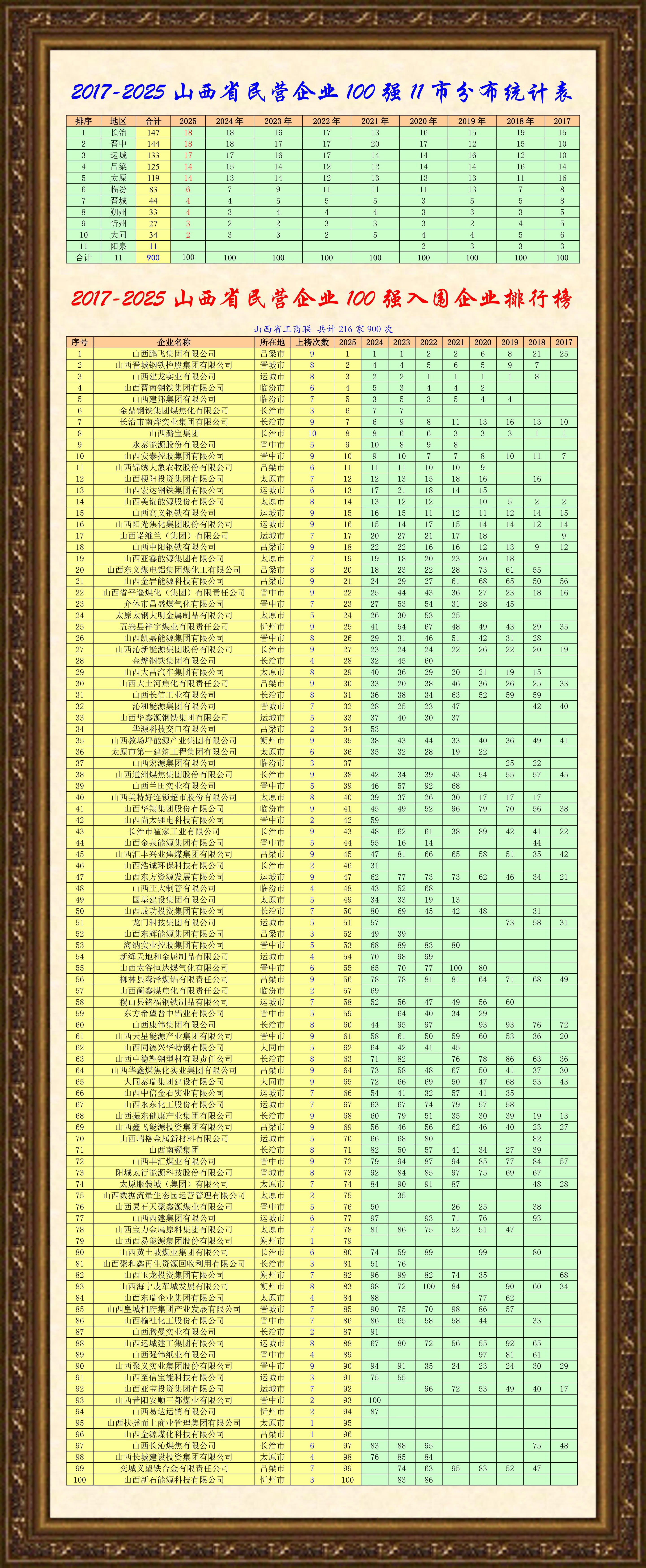 省工商聯從2017年開始公布“山西省民營企業100強榜單”,今年是第九年,前后有216家企業上榜,他們是山西經濟社會發展和人民生活提高的重要支撐,我們理所應當大力宣傳他們的功績!讓全社會更加熱愛他們,支持他們,幫助他們,在新的征程上攻堅克難,艱苦奮斗,把企業做得更大更強,為中國式現代化做出更大的貢獻!